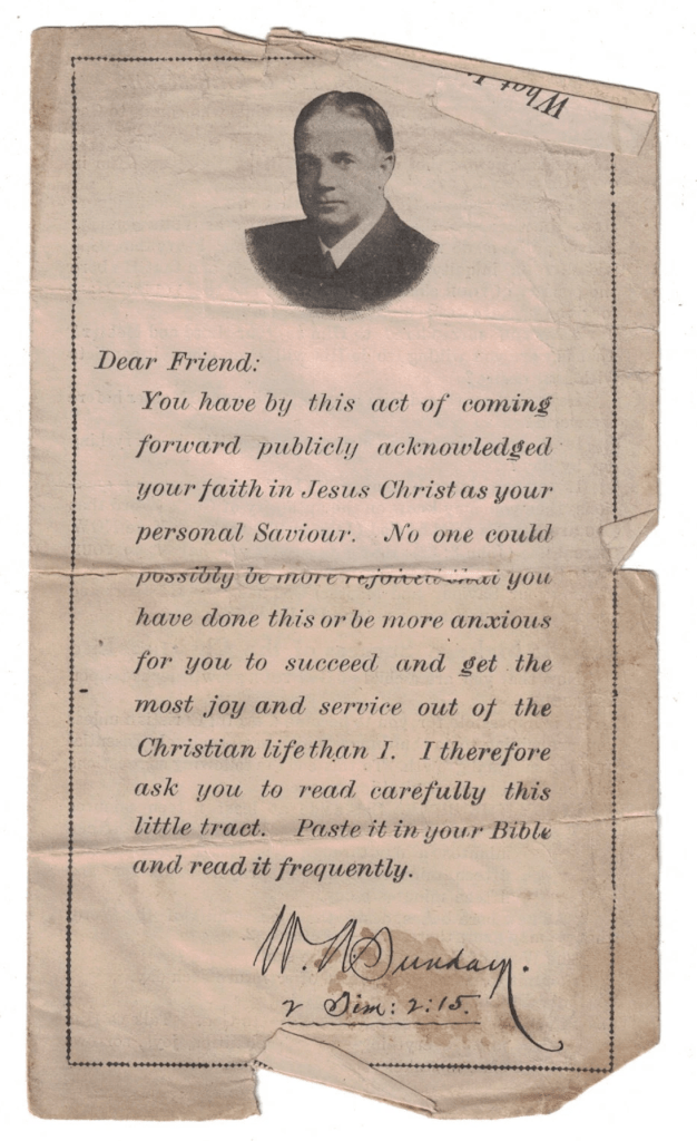 You have by this act of coming forward publicly acknowledged your faith in Jesus Christ as your personal Saviour. No one could possibly be more rejoiced that you have done this or be more anxious for you to succeed and get the most joy and service out of the Christian life than I. I therefore ask you to read carefully this little tract. Paste it in your Bible and read it frequently.