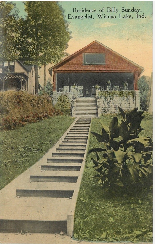 The Billy Sunday home in Winona Lake. Image left is 2025.