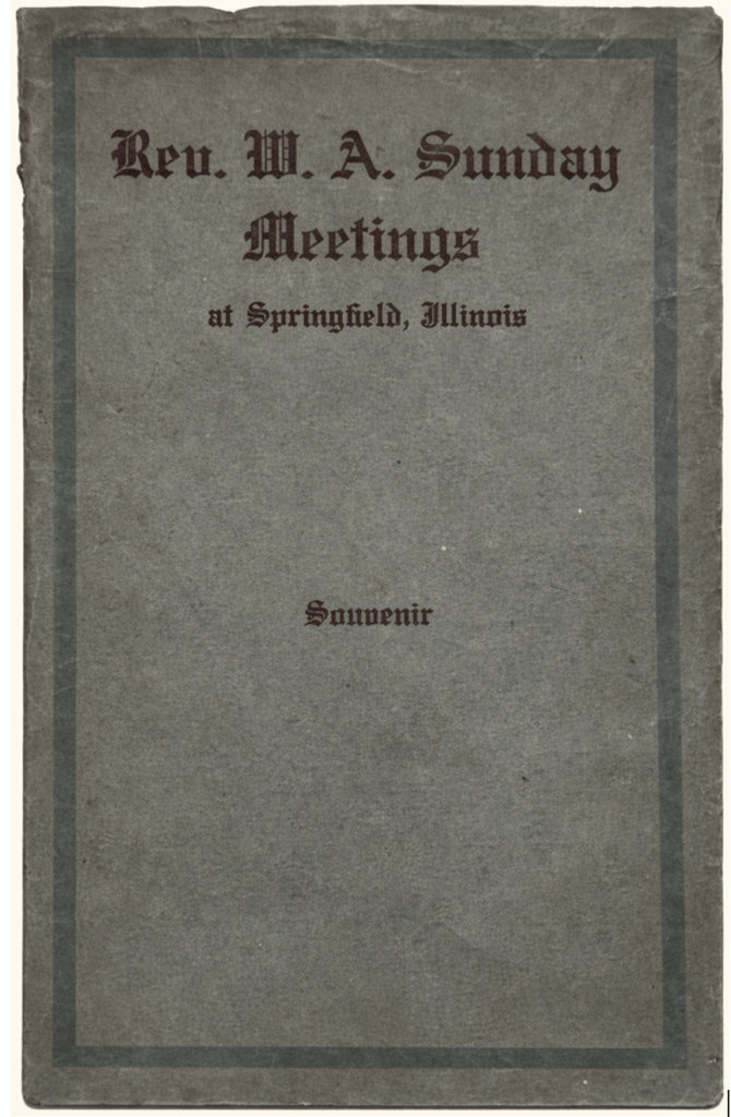 I own a 60-page souvenir booklet titled Rev. W. A. Sunday Meetings at Springfield, Illinois (c. 1909). When it arrived in November 2025, the bottom left corner throughout the entire booklet had been ripped away and was missing from the package .