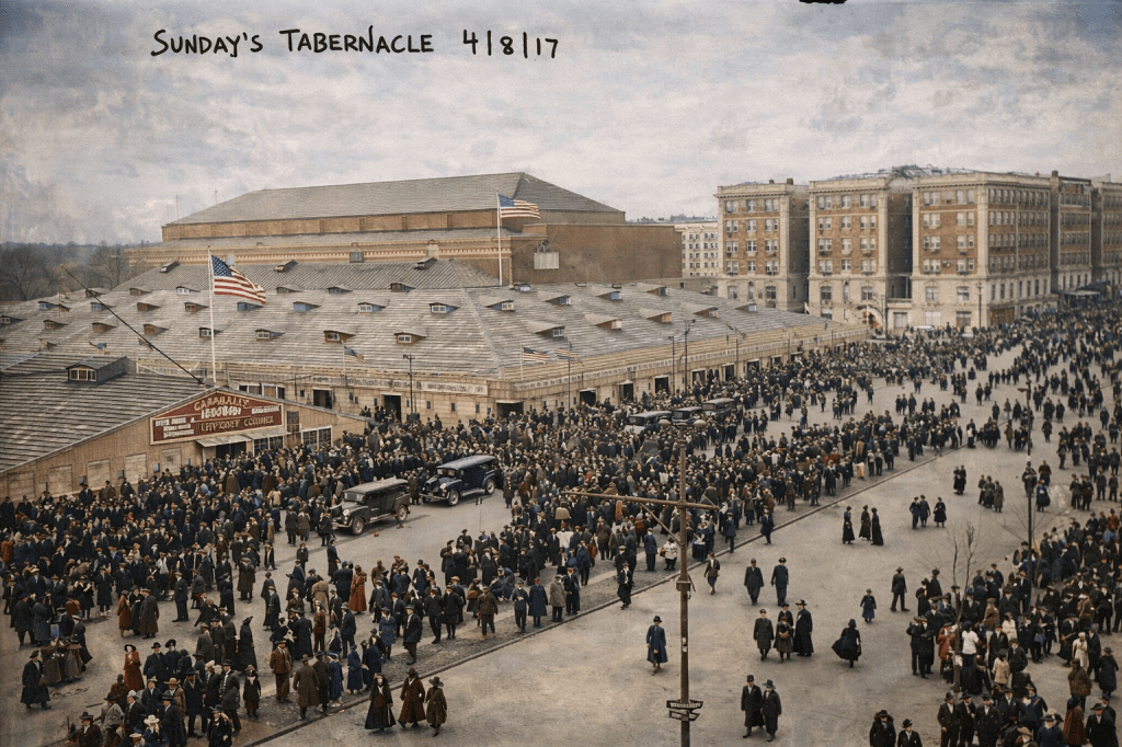 “New York City gave me $120,485, Mr. Sunday said, and I turned over every cent for the work that I had said I would. I went to Chicago, and the city gave me $65,000 and I gave the sum to the Pacific Garden mission. I give away a tenth of my income. And that is all right. I do not advertise all the things I do with my money. I do not tell all the world the things that I pay off. You follow me around, some of you, and I will make you dizzy with the money I give away. But I don’t have to tell anyone. It is written down above so that is all that matters.”